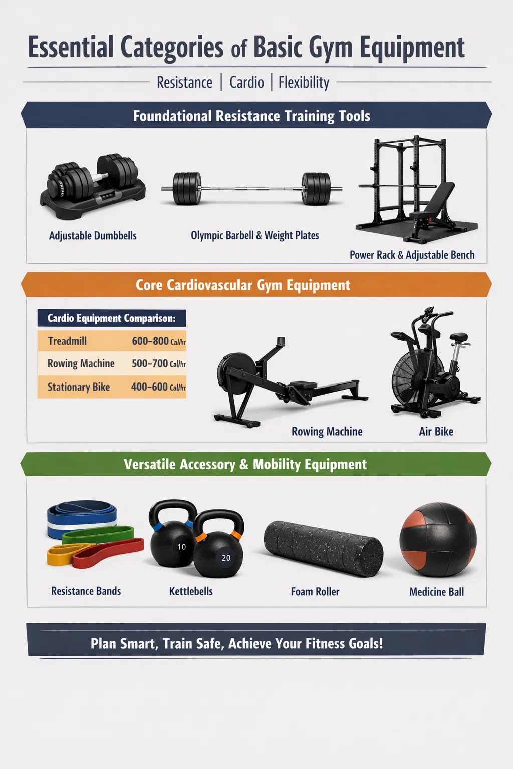 Bei der Entscheidung was Fitnessgeräte Um Prioritäten zu setzen, berücksichtigen Sie die Hierarchie der Ausbildung. Wenn Ihr Ziel der Fettabbau ist, sollten Sie Cardio-Training und Kettlebell-Training mit vielen Wiederholungen priorisieren. Wenn Ihr Ziel Kraft ist, sind die Langhantel und die Ablage Ihre wichtigsten Hilfsmittel. Hochwertig Fitnessgeräte sollte ein Leben lang halten; Achten Sie auf eine Stahlkonstruktion mit Pulverbeschichtung und vermeiden Sie bewegliche Kunststoffteile an tragenden Bauteilen.