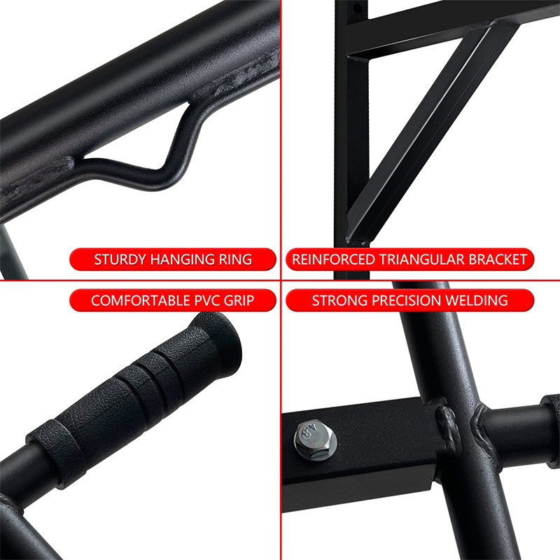 5. Hohe Sicherheit: Grundlegende Klimmzugstangen bestehen in der Regel aus hochfesten Materialien, wie hochwertigen Stahl - oder Legierungsmaterialien, um deren Stabilität und Haltbarkeit zu gewährleisten. Eine angemessene strukturelle Gestaltung und Installationsanleitung kann Risiken während des Trainings verringern und die Sicherheit der Trainer gewährleisten.