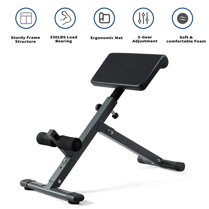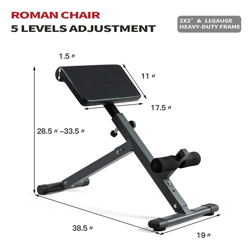 1. Faltbares Design: Der römische Stuhl verfügt über ein faltbares Design, das sich bei Nichtgebrauch leicht zusammenklappen lässt, wodurch Stauraum gespart wird, und eignet sich besonders für Fitnessumgebungen zu Hause. Die zusammengeklappte Höhe ist niedrig, was das Tragen und Aufbewahren erleichtert und den Bedienkomfort erhöht.